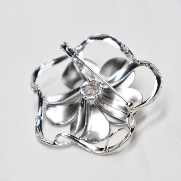 ホワイトに輝くアコヤ真珠と艶消し加工を施されたシルバーの花びらがアクセントになり、大人の女性を演出してくれる一品です。