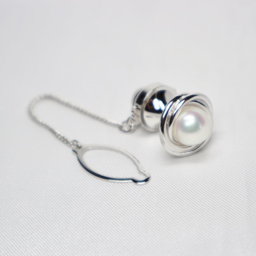 アコヤパールの7.5mmサイズを使用したピンブローチ。大人の男性のおしゃれアイテム。他人と違うアイテム選びにオススメの一品です。