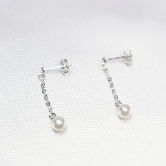 伊勢志摩特産のアコヤベビーパールが輝きを放ちながら揺れる、エレガントなチェーンピアス。