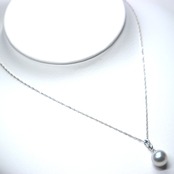 美しい光沢、ほのかなピンクの発色をもつナチェラルブルーのアコヤ真珠(8.5mm)が胸元を綺麗に彩ってくれる一品に仕上げました。
